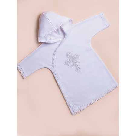 Светлая и мягкая крестильная рубашка для новорожденного — важный элемент для проведения священного Таинства. Рубашка для крещения мальчика выполнена из футера (100% хлопок), что делает ее идеальным выбором для крещения в холодный сезон или в прохладном храме. Плотный трикотаж с нежным начесом внутри бережно согреет малыша после купели, обеспечивая максимальный комфорт и уют.