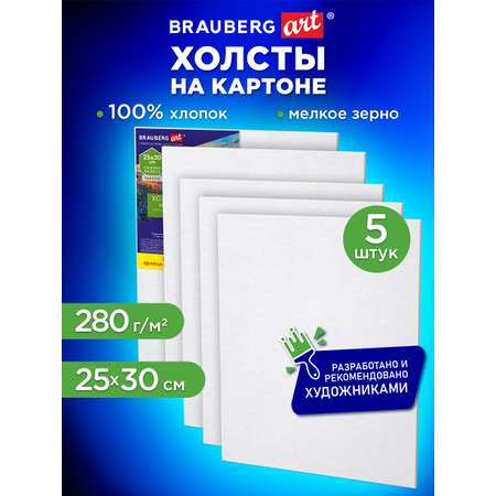 Холст для рисования на картоне Brauberg маленький 25x30 см набор 5 штук