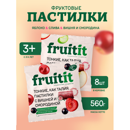 Пастила Fruitit от ТМ " Правильные сладости" без сахара: микс Вишня, Яблоко, Слива — 560 г (8 пачек × 70 г)