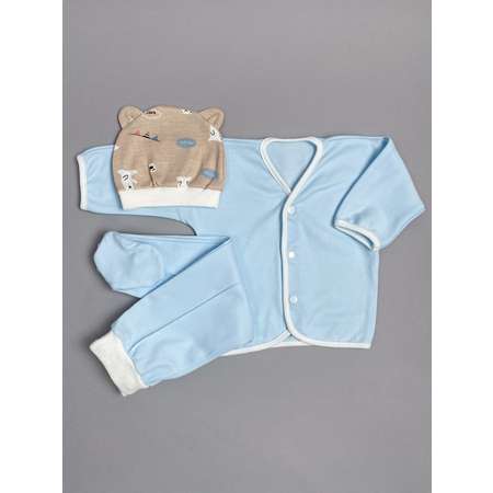 Комплект детской одежды из кофточки с ползунками небесного цвета из Базовой коллекции и акцентной шапочки с ушками такой удобный из-за натурального 100% хлопкового трикотажа интерлок.