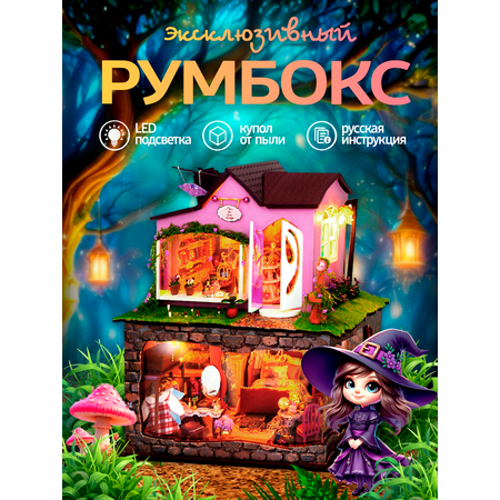 Подарочный набор для увлекательной сборки магазинчика с атрибутами волшебства и магии. Комплектация включает деревянные детали и все необходимое для конструирования рум бокса своими руками. Еще одно название румбокса это интерьерный конструктор. Дом содержит предметы обихода максимально реалистичные и детализированные. Все элементы сборной модели выполнены из дерева, картона, ткани и фурнитуры. Разнообразные виды творческой деятельности применяются во время конструирования roombox. Мальчикам и девочкам с 8 лет потребуется помощь и участие родителей. Семейное хобби замечательный вариант времяпрепровождения. Для подростка не составит труда самостоятельно собрать конструктор и украсить свою комнату миниатюрой с подсветкой. Декор для комнаты выполнит функцию ночника или светильника. Пылезащитный купол в комплекте очень практичный предмет и сохранит сборную модель от пыли и разрушений.