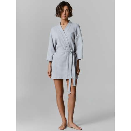 Вафельный халат для женщин — это воплощение домашнего уюта и лёгкости. Модель прямого укороченного силуэта со спинкой без швов обеспечивает комфорт и свободу движений. Халат с запахом и съемным поясом, который продет в шлевки по бокам, позволяет легко регулировать посадку и создавать расслабленный образ.Укороченные рукава и аккуратная отделочная полоска по краю застежки и горловины подчеркивают лаконичный дизайн. Все края рукавов и низа халата мягко обработаны для долговечности и опрятного вида.