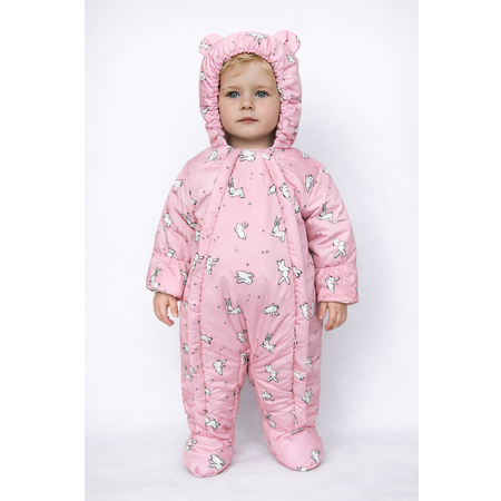 По всей длине совместного комбинезона предусмотрена застежка-молния для более удобного одевания малыша, есть защита подбородка. Молния закрыта ветрозащитной планкой. На капюшоне предусмотрена резинка для лучшего прилегания при ветреной погоде. Отвороты-ладошки на рукавах могут заменять варежки. Они согреют ручки малыша в холодную погоду. Ножки полностью закрытые. На талии есть резинка для создания силуэта.