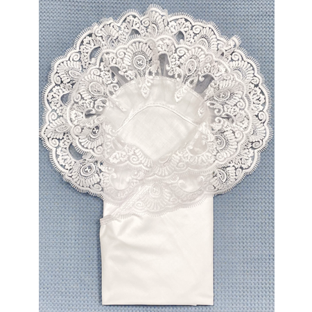 Если Вы выбираете товары для детей с натуральным составом , то нарядный кружевной уголок станет великолепным дополнением к конверту на выписку из роддома для малыша. Мы предлагаем мягкие, дышащие, а самое главное натуральные с безопасным органическим составом и качественные пеленки из премиального класса ткани - сатина. Кружевная пеленка (не ситцевая, не муслиновая, не фланелевая) изготовлена из 100% гипоаллергенного, органического хлопка и украшена 2-мя рядами пышного кружева, абсолютно безопасна для нежной кожи новорожденного малыша, не колется. Уголок можно скомбинировать с любым конвертом, одеялом, вязаным пледом на выписку независимо от времени года. Комплект для малыша подойдет, как аксессуар-крыжма для крещения мальчика или девочки. А также нарядную, детскую пеленку с кружевом можно захватить на семейную фотосессию: получится отличный фон для фото или фото плед.