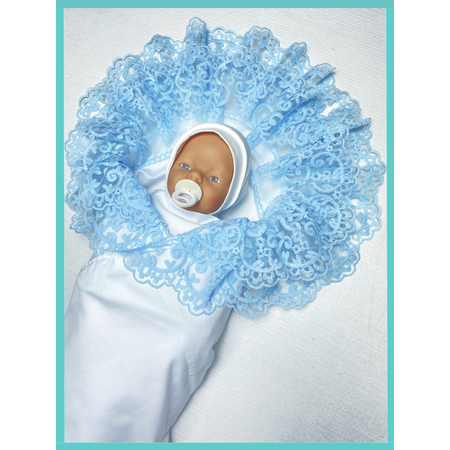 Цена на Конверт на выписку Делоникс Пеленка уголок с кружевом голубой - 2999 ₽.