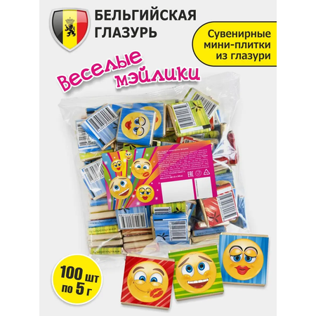 Мини шоколадки со смайлами - это порционный шоколад по 5г из молочной бельгийской глазури в индивидуальной упаковке. Каждая маленькая плитка как конфета бонбонрьерка с яркой праздничной этикеткой. Интересный вариант для угощения в детский сад и школу на утренник и выпускной, в качестве призов и вкусных подарков на конкурсы, корпоративные мероприятия, а также для клиентов, гостей, сотрудников и коллег.