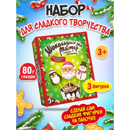 Юные повара и шеф кондитеры самостоятельно приготовят шоколадные конфеты на палочке в виде главного символа нового года Деда Мороза, а также снеговика и пингвина. В комплекте цветная глазурь, фигурные формы и палочки. На коробке есть понятная инструкция - ребенок от 5 лет сможет легко разобраться сам, особенно если он увлекается готовкой или любит создавать поделки.