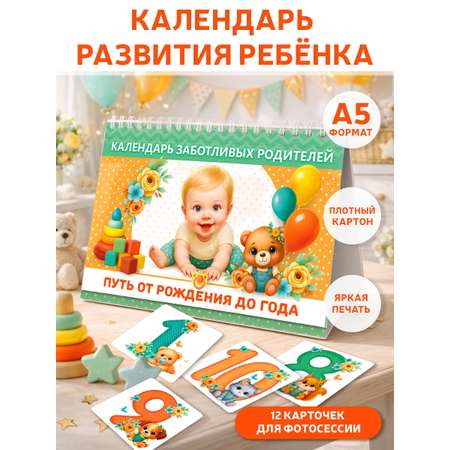 Настольный календарь-домик перекидной создан как удобный помощник для родителей, которые хотят шаг за шагом отслеживать развитие малыша в первый год жизни. Изделие выполнено из плотного картона, формат А5, длина готового календаря 210 мм, ширина 140 мм. Прочная пружина обеспечивает легкое перелистывание страниц, а яркая печать подчеркивает насыщенность красок и четкость иллюстраций. В упаковке есть ещё 12 карточек для фотосессий с цифрами, которые обозначают месяц ребенка, ведь многие родители любят отмечать каждое достижение малыша в течение его первого года жизни. Красочная обложка с улыбающимся ребенком, мягкими игрушками и воздушными шарами словно переносит в мир заботы и радости, где каждый месяц наполнен новыми открытиями. Настольный перекидной календарь выглядит аккуратно и стильно на рабочем столе или комоде в детской. Календарь для мамы станет надежным помощником в первый год жизни малыша. На страницах отражено развитие ребенка по месяцам, важные навыки, изменения в поведении и здоровье. Информация подана доступно и понятно, поэтому родители почувствуют уверенность и спокойствие. Такой формат помогает не сравнивать, а внимательно наблюдать индивидуальный путь маленького человека. Календарь развития малыша подойдет будущим родителям, молодым мамам и папам, а также станет трогательным подарком на выписку, крестины или первый визит к новорожденному. Он объединяет практичность и эстетику, служит памятным аксессуаром и украшением интерьера. Это не просто календарь для мамы, а символ заботы, внимания и любви к каждому дню малыша. И спустя годы такой настольный календарь-домик станет трогательной семейной реликвией, сохраняющей память о самом нежном периоде жизни ребёнка.