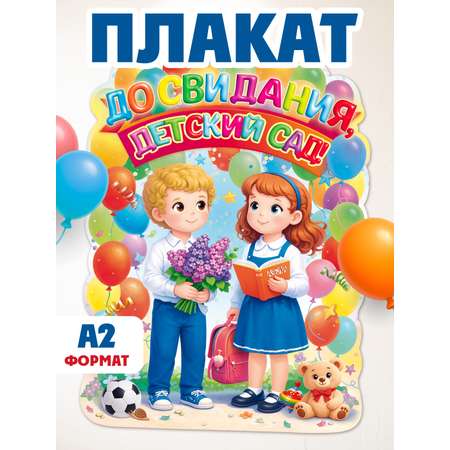 Вырубной плакат поможет быстро и эффектно оформить выпускной утренник и прощание с детским садом, создав праздничное настроение для детей и родителей. Изделие выполнено из плотного картона без отделки, имеет длину 600 мм и ширину 440 мм, в комплект входит 1 плакат с фигурной вырубкой формата А2. Крупный настенный постер удобен для размещения на двери, стене или мебели. Это яркий плакат «До свидания, детский сад!» с крупной радужной надписью в верхней части, окружённой воздушными шарами разных цветов, звездочками и конфетти. В центре композиции изображены мальчик с букетом сирени и девочка с книгой «Азбука» и розовым рюкзаком, рядом мишка-игрушка, пирамидка и футбольный мяч, что подчёркивает атмосферу детства и игры. Края плаката мягко закруглены, фон светлый, с плавными переходами оттенков, поэтому картинка выглядит объёмной и живой. Стиль иллюстрации добрый, мультяшный, с аккуратной прорисовкой деталей и выразительными лицами персонажей, что особенно нравится выпускникам детского сада и смотрится выигрышно на фотографиях. Такой плакат до свидания детский сад станет центральным акцентом фотозоны, украсит актовый зал, группу или входную зону. Плотный картон обеспечивает хорошую форму, плакат не провисает и не деформируется, его удобно крепить на скотч или кнопки, а после праздника хранить как памятный сувенир. Плакат выпускной детский сад экономит время на оформлении: одно крупное красочное панно заменяет сложный декор и сразу задаёт нужное настроение. Гармоничные цвета хорошо читаются издалека, поэтому оформление выпускного в саду выглядит профессионально, даже если вы готовите праздник своими силами. Декор детский сад подойдёт воспитателям, заведующим, родительскому комитету и тем, кто хочет подчеркнуть значимость перехода ребёнка в школу и сделать прощание с садиком по-настоящему трогательным и запоминающимся.