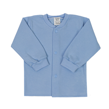 Детская кофточка голубая из хлопка с начесом. Воротник-стойка, кнопки, антицарапки. Утепленная, но дышащая – деликатный начес для дома и прогулок. Сочетается с любой одеждой. Кофточка "Базовая коллекция с начесом" – тепло, комфорт и стиль для вашего малыша!