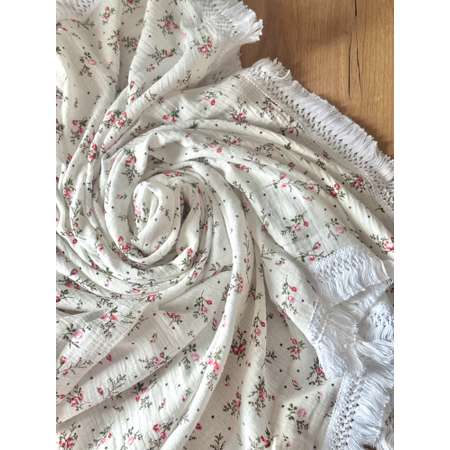 Муслиновый плед Ладушки 100Х130 см детский, цветочки красные на белом