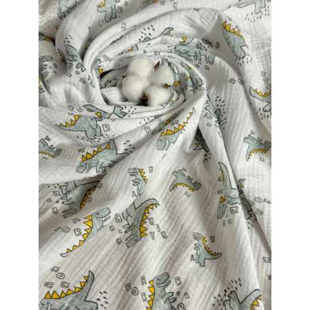 Муслиновый плед Ладушки 100Х130 см детский, динозавры на белом