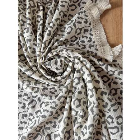 Муслиновый плед Ладушки 100Х130 см детский, леопард серый на молочном