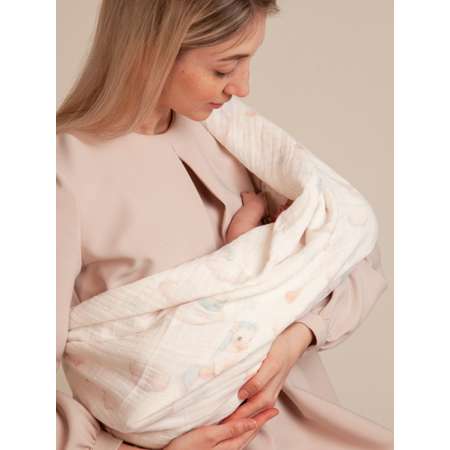 Ткань муслин известна во всем мире. Заботливые мамы отдают предпочтение муслину. Благодаря натуральности и особому переплетению нитей, у ткани много положительных свойств: полотно тонкое и одновременное плотное- это обеспечено использованием специальной технологии скручивания и переплетения нитей. Особенность муслина в том, что с каждой стиркой он не грубеет, а становится еще более мягким и нежным на ощупь.Хлопковое волокно отлично впитывает влагу и пропускает воздух, способствуя глубокому и комфортному сну, предотвращая перегрев. Текстура ткани очень мягкая, нежно прикасается к чувствительной коже младенца. Им можно укрыть малыша, запеленать при необходимости, использовать как накидку для кормления и накидку на коляску от солнца. Также его можно использовать для летней выписки из роддома. Плед легко стирается, после каждой стирки становятся мягче и мягче, быстро сохнет.Плед-пеленка выполнена из двухслойного муслина. Размер:120х120 см.