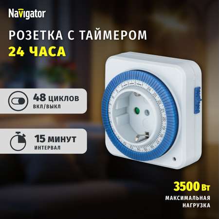 Цена на Розеточный таймер аналоговый Navigator суточный с заземлением - 807 ₽.