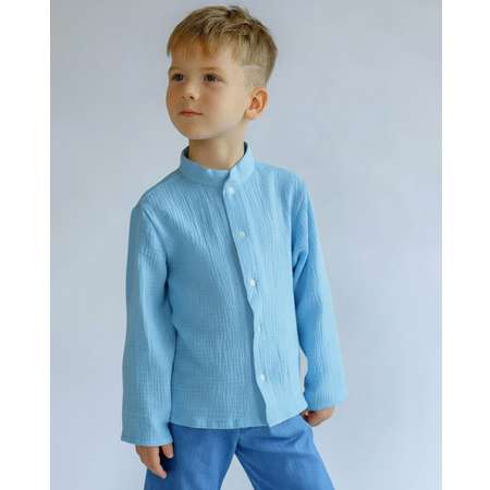 Легкая сорочка на кнопках из 100% натурального хлопка для малышей в детский сад и в гости. Голубая рубашка с длинными рукавами тонкая невесомая, у нее характерная для муслина жатая фактура. Тонкая сорочка удлиненная в русском стиле подойдет для мальчиков. Свободного прямого покроя из натурального экологического материала рубашка с длинным рукавом на каждый день круглый год. Стильный и модный лонгслив для малышей - идеальная одежда детская в детский сад на утренник.