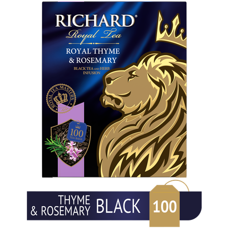 Достойный внимания изысканный купаж Richard Royal Thyme and Rosemary представляет собой гармонию нежного черного чая, утонченного аромата натурального тимьяна и деликатных нот розмарина. Наслаждайтесь великолепием этого классического сочетания, разработанного в соответствии с рецептами королевского двора Richard King's Tea №1. В нашей королевской коллекции чая Richard / Ричард вы найдете черные, зеленые и травяные чаи, отобранные с лучших плантаций всего мира. Букеты чая Richard разработаны в традиционном английском стиле, и каждый из них обладает своим уникальным характером, обогащенным разнообразием сортов чая, душистых трав и специй. Особое место в этой коллекции занимает наш травяной чай с чабрецом, которое добавляет каждому букету дополнительные яркие нотки, позволяя ему сверкать всеми гранями королевского вкуса. Наш ароматный чай Richard Royal Thyme & Rosemary представлен в удобной большой упаковке, содержащей 100 пакетиков. Этот успокаивающий байховый чай станет превосходным подарком на любой праздник, будь то День рождения или любое другое знаменательное событие. Сделайте подарок, который воплощает в себе утонченность вкуса и качество, характерные для нашего чая Richard.