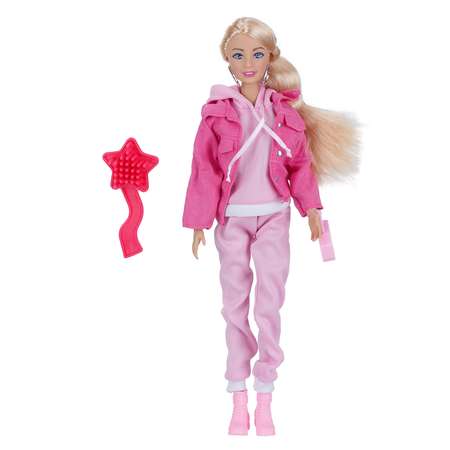 Модница София одета в спортивный костюм розового цвета, состоящий из толстовки с капюшоном и джоггеров, и курточку с карманами цвета фуксии, на ногах - стильные ботиночки в тон костюма. Образ дополняют изящные серьги и сумочка-клатч оригинальной формы. Одежда и аксессуары легко снимаются и надеваются. С такой модной куклой девочке будет интересно и весело играть: благодаря тому, что руки и ноги куклы подвижны, им можно придать любое положение. У Софии длинные красивые волосы, которые хозяйка куклы сможет заплетать в разные причёски. Детально проработанный дизайн игрушки вдохновит девочку на множество интересных игровых сюжетов.
