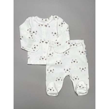 Готовый комплект одежды, который обеспечит комфорт новорожденного на весь день. Прекрасный вариант для выписки из роддома или в качестве подарка на рождение малыша.
