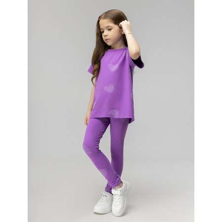 Футболка свободного силуэта с втачным коротким рукавом, горловина футболки округлой формы. Леггинсы прямые с цельнокроеным поясом с внутренней резинкой, низ ровный.