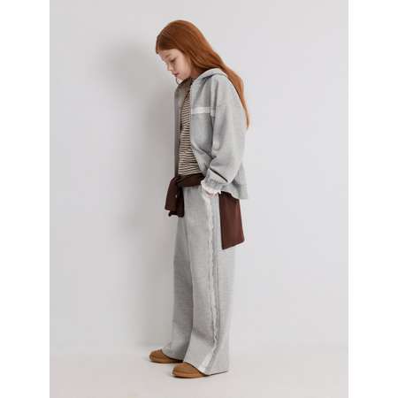 Детские серые брюки для девочки сочетают в себе удобство спортивного стиля и нежную кружевную отделку. Модель выполена из хлопкового футера с петлями на изнанке (безх начеса), благодаря чему они подходят для ношения в теплое время года. Пояс на резинке комфортно садится на разные типы фигур и дополнительно регулируется шнурком. практичности добавляют вместительные боковые карманы. Свободные спортивные брюки дарят легкость движений и отлично подходят для создания расслабленных образов. Их главное украшение — кружевная отделка из шитья, придающая необычный стильный штрих. Дополните брюки комплектной зипкой (20211000054), чтобы собрать необычный костюм для девочки-подростка.