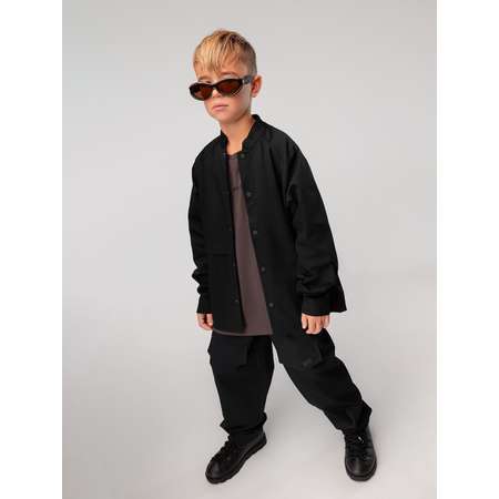 Костюм для детей, состоящий из рубашки и брюк. Подойдет как для мальчика, так и для девочки. Свободная рубашка на кнопках, воротник стойка, правая полочка со складкой. Свободные брюки, расширенные в бёдрах, низ изделия прямой. Брюки с боковыми карманами. На передних половинках декоративные клапаны, на поясе шлёвки. Материал: смесовая ткань саржевого переплетения. Плотность саржевого переплетения 240 гр.