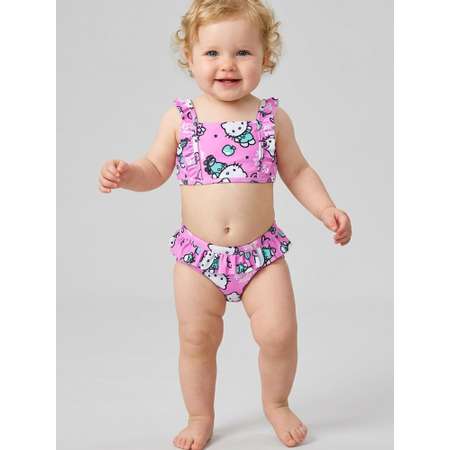 Купальник детский раздельный для девочки. Выполнен в светло-розовом цвете с принтом Hello Kitty, конфетами и сердечками. У топа — широкие бретели с милыми воланами, которые делают образ особенно воздушным. Плавки украшены воланом по линии талии, создавая нежный. Все детали сделаны из мягкой эластичной ткани, с подкладкой внутри. Благодаря UF-защите, ткань сохраняет первоначальный вид даже при длительном пребывании на солнце. Подходит для плавания и активного отдыха.