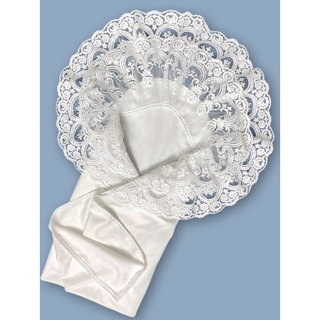 Если Вы выбираете товары для детей с натуральным составом , то нарядный кружевной уголок станет великолепным дополнением к конверту на выписку из роддома для малыша. Мы предлагаем мягкие, дышащие, а самое главное натуральные с безопасным органическим составом и качественные пеленки из премиального класса ткани - сатина. Кружевная пеленка (не ситцевая, не муслиновая, не фланелевая, не из бязи) изготовлена из 100% гипоаллергенного, органического хлопка и украшена широким красивым кружевом, абсолютно безопасна для нежной кожи новорожденного малыша, не колется. Уголок можно скомбинировать с любым конвертом, одеялом, вязаным пледом на выписку независимо от времени года. Комплект для малыша подойдет, как аксессуар-крыжма для крещения девочки. А также нарядную, детскую пеленку с кружевом можно захватить на семейную фотосессию: получится отличный фон для фото или фото плед.