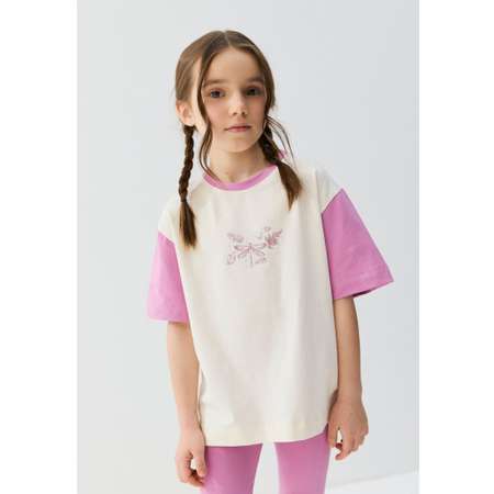Футболка для девочки от российского бренда BUNGLY. Футболка детская оверсайз со стойким принтом и цветными рукавами для освежающих образов. Большой объем и широкие рукава позволяют двигаться свободно. Нежный дышащий трикотаж не теряет форму даже при частых стирках. Отлично сочетается с шортиками, брючками, джинсами и юбочками.