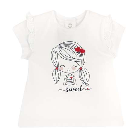 Футболка для девочка. Принт с изображением куклы. Эластичный джерси. Устойчивый хлопок. Продукция, сертифицированная по стандарту OEKO-TEX: качество для вашего малыша. До размера 086/18 месяцев застегивается на кнопки на спине. Круглый вырез горловины.
