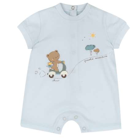 Детский песочник для новорождённого мальчика от Chicco выполнен в голубом цвете и украшен печатным рисунком, расположенным на передней части. Крой с короткими рукавами и округлой линией горловины. Песочник для малышей сшит из хлопкового трикотажа. Ткань мягкая, приятная при контакте с кожей и подходит для чувствительной кожи новорождённых. Песочник детский застёгивается на кнопки на спине и с внутренней стороны штанин, что позволяет переодевать ребёнка и менять подгузник, не раздевая его полностью. Используется хлопок, выращенный с соблюдением экологических и социальных стандартов, материалы сертифицированы по стандарту OEKO-TEX.