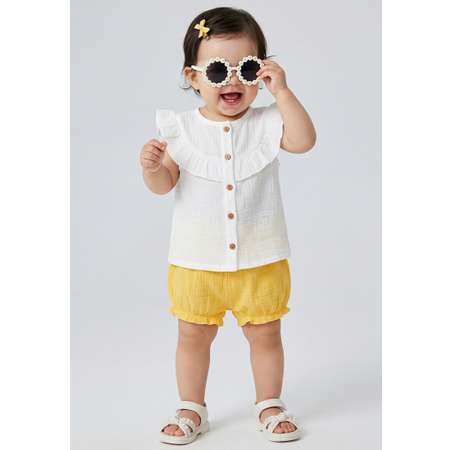 Блузка для девочки и шорты для девочки сшиты из ткани муслин, пояс шорт на резинке. Майка для девочки на пуговках.