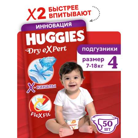 Подгузники Huggies Dry eXpert 4 (7-18 кг) 50 шт.