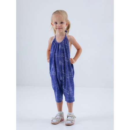 Полукомбинезон выполнен в пляжном стиле, что обеспечит ребенку максимальную свободу движений и комфорт, благодаря лифу без рукавов, открытой спинке и объемным штанинам. Верх изделия фиксируется и регулируется завязками. На полукомбинезоне есть удобный кармашек, в котором можно хранить разные мелочи.