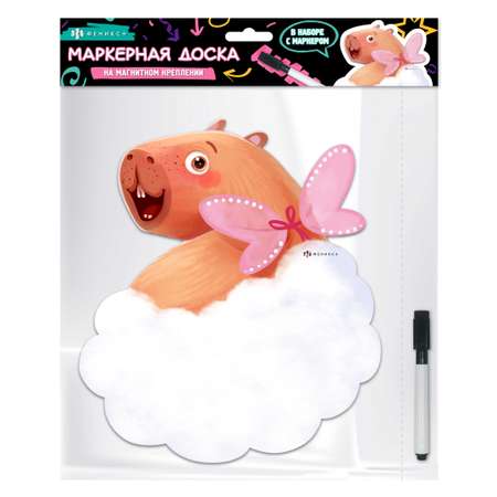 Магнитная доска c полем для рисования и письма арт. 73037/ 50 КАПИБАРА-МИЛАШКА ( 22,2х25,3 см, мелованная бумага, ферроагломерированный полимер, 1 маркер в наборе, фигурная вырубка, полноцветная печать) Магнитная доска для рисования и письма — это универсальная развивающая игрушка, которая подходит для детей от 2 лет. Расположенная на стене или холодильнике, она станет отличным помощником в обучении письму, развитию творческих навыков и мелкой моторики. Удобный формат делает ее идеальной для игр в дороге, в машине или на отдыхе. Это безопасное решение для малышей, которое не требует дополнительных материалов, таких как бумага или краски. Доска магнитно-маркерная идеально подходит для размещения фотографий и заметок с помощью магнитных рамок. Магнитная доска детская способствует развитию у малышей навыков моторики и творчества. Для самых маленьких они станут первым шагом в мир воображаемых игр, особенно если использовать их совместно с развивающими игрушками. Доска для фото поможет сохранять памятные моменты, добавляя уникальность интерьеру. Магнитная доска 4 в 1 — это полезное и увлекательное решение для детей. Она сочетает в себе функции доски школьной, маркерной и одновременно служит как антистресс развивашка. Доска прекрасно подходит как мальчикам, так и девочкам разного возраста: от 2 до 8 лет. Она поможет освоить азы рисования, создавать интересные картинки или изучать буквы и цифры в увлекательной форме. Игрушка станет полезным подарком ребенку в день рождения или любой другой праздник. Компактный размер позволяет брать ее с собой куда угодно. Этот вариант особенно понравится родителям благодаря своему функционалу: магнитная поверхность обеспечивает удобство использования и легкость стирания нарисованного. Феникс+ предлагает широкий выбор продукции. Канцтовары для школы и творчества, офиса и развития детей в домашних условиях, крутые штуки, бумажная продукция, ежедневники и записные книжки. Ассортимент идеально подходит для всех возрастов для мальчиков и девочек, для женщин и мужчин. Выбирайте Феникс+ и получайте удовольствие от работы и учебы!