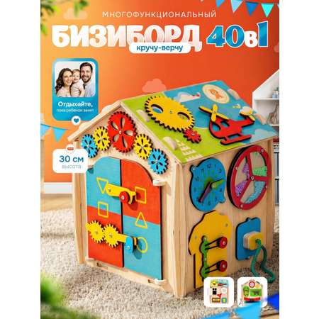 Бизикуб отлично подходит для развития моторики и координации движений. Домик вместительный и может служить ящиком для хранения игрушек.
