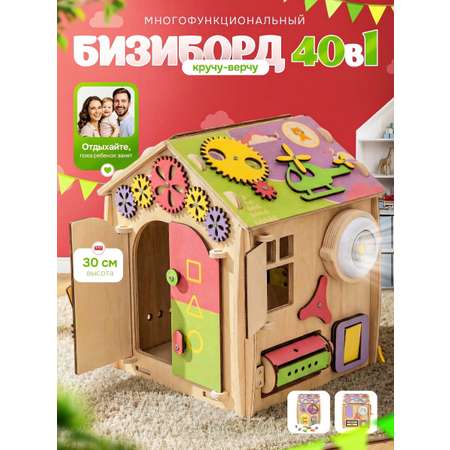 Бизикуб отлично подходит для развития моторики и координации движений. Домик вместительный и может служить ящиком для хранения игрушек.