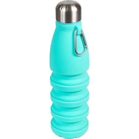 Бутылка складная "deVENTE" 500 мл, герметичная, диаметр 7 см, высота 28 см, в сложенном виде высота 17 см, силиконовая, герметичная, с металлической крышкой, с карабином, мятная, индивидуальная упаковка