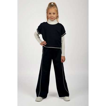 Школьный костюм для девочки - брюки палаццо и жилет из хлопкового футерированного полотна - создан специально для ценителей стиля и комфорта. Жилет с округлым вырезом горловины , спущенным плечом и поясом по низу изделия придаст образу элегантность и индивидуальность. Широкие брюки клеш от бедра без молнии и пуговиц сочетает в себе красоту, практичность и удобство, которые так ценят современные девочки. Пояс на резинке не давит на животик, брюки легко переодевать на физкультуру. Школьная форма от бренда "Я Большой" гигроскопична и приятна к телу, идеально для начальных классов.
