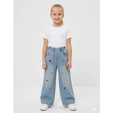 Джинсы для девочки, с завышенной талией. Джинсы выполнены из качественного плотного эластичного денима. Спереди имитация ширинки. Модель дополнена шлевками для ремня, двумя карманами спереди и двумя карманами сзади. Джинсы отлично подойдут для повседневной носки. Перед ноской, рекомендуем предварительную стирку.