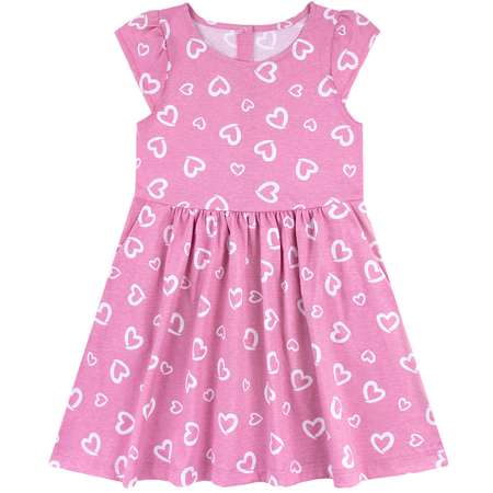 Легкое летнее розовое платье для девочки из 100% хлопка кулирка с коротким рукавом, свободного кроя, с отрезной талией и застежкой на кнопках по спинке нежного насыщенного розового цвета с милым принтом белых сердечек. Свободный крой с отрезной талией и удобной застежкой на кнопках делает эту модель идеальной для повседневной носки и особых моментов.