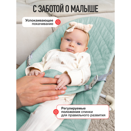 Детский складной шезлонг Mamagoods для новорожденных от 0 кресло качалка для малышей мятный лён