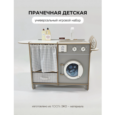 Игровой набор 3 в 1 — это универсальный детский игровой набор, который объединяет кухню, стиральную машину, гладильную доску и удобные ящики для хранения. Конструкция выполнена из прочного ЛМДФ, что гарантирует надежность и долговечность при активной игре.
