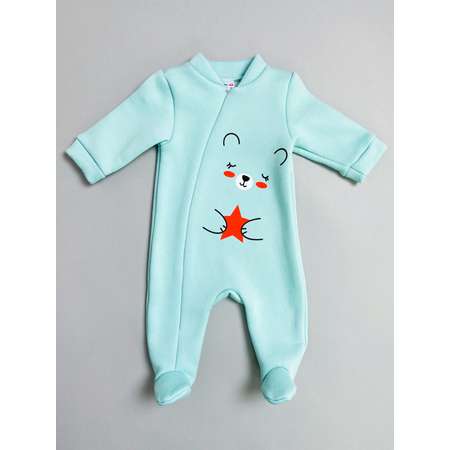 Базовый детский комбинезон для второго слоя для мальчика, для девочки пастельного голубого цвета на основе хлопка с небольшим добавлением полиэстера (флисовый начес), с длинным рукавом и закрытыми ножками, на скрытой молнии. Комбинезон выполнен из плотной ткани натурального футера 3-нитки с деликатным начесом, отлично сохраняющим тепло и поддерживающим естественный теплообмен. Комбинезон подходит в качестве второго слоя даже для новорожденных малышей. Скрытая молния расположена по всей длине изделия до самых пяточек, позволяют полностью раскрыть комбинезон и в считанные секунды переодеть ребенка. Запястья облегают широкие мягкие манжеты. Закрытые ножки гарантируют тепло и удобство на весь день. Эргономичный крой изделия выполнен под подгузник. Комбинезон украшен стильным принтом на водной основе в виде милого мишки, обнимающего звездочку.