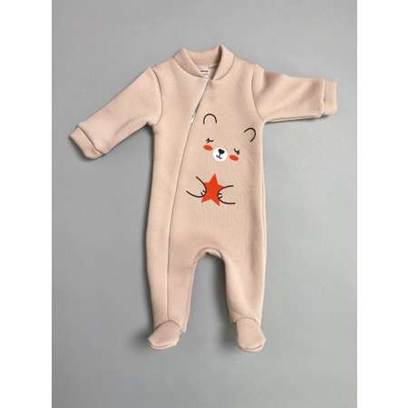 Базовый детский комбинезон для второго слоя для мальчика, для девочки пастельного бежевого цвета на основе хлопка с небольшим добавлением полиэстера (флисовый начес), с длинным рукавом и закрытыми ножками, на скрытой молнии. Комбинезон выполнен из плотной ткани натурального футера 3-нитки с деликатным начесом, отлично сохраняющим тепло и поддерживающим естественный теплообмен. Комбинезон подходит в качестве второго слоя даже для новорожденных малышей. Скрытая молния расположена по всей длине изделия до самых пяточек, позволяют полностью раскрыть комбинезон и в считанные секунды переодеть ребенка. Запястья облегают широкие мягкие манжеты. Закрытые ножки гарантируют тепло и удобство на весь день. Эргономичный крой изделия выполнен под подгузник. Комбинезон украшен стильным принтом на водной основе в виде милого мишки, обнимающего звездочку.