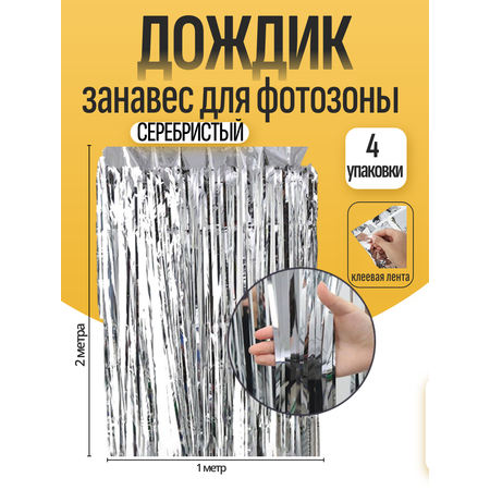 Дождик для фотозоны ZHIYU MENG серебристый 2х1м 4 штуки