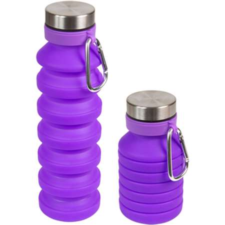 Бутылка складная deVENTE 500 мл, герметичная, диаметр 7 см, высота 24 см, в сложенном виде высота 14 см, силиконовая, герметичная, металлической крышкой, с карабином, сиреневая, индивидуальная упаковка