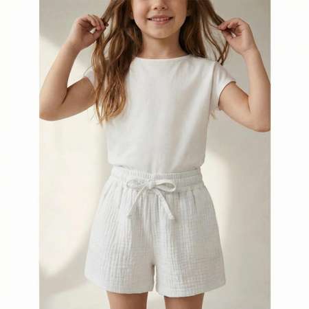 Летние муслиновые шорты для девочек — это идеальная одежда для жарких дней. Модель изготовлена из натурального 100% хлопка-муслина, благодаря чему получается легкой, дышащей и невероятно мягкой на ощупь. Ткань отлично пропускает воздух, быстро сохнет и не вызывает аллергии, а после каждой стирки становится только мягче.