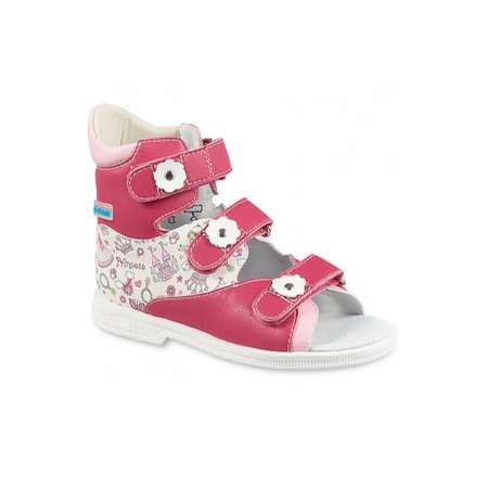 Сандалии с высокими берцами EGER в малиновых тонах с тематическим принтом «Princess» для девочек.