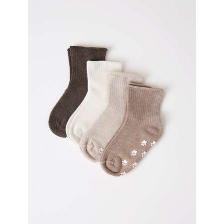 Набор носочков в упаковке 4 пары, подходят для новорожденных малышей в возрасте 0-6 месяцев, которые начинают активно двигаться, ползать. Для ребенка 6-12 месяцев носки нескользящие — это важный элемент безопасности и помощник в развитии. Они создают необходимую устойчивость для ключевых двигательных навыков этого периода. От года до 2 лет выполняют роль защитной и профилактической «экипировки» для юного непоседы, позволяя ему безопасно реализовывать свою энергию, развивать координацию и уверенность в движении, минимизируя риск травм на скользких поверхностях.